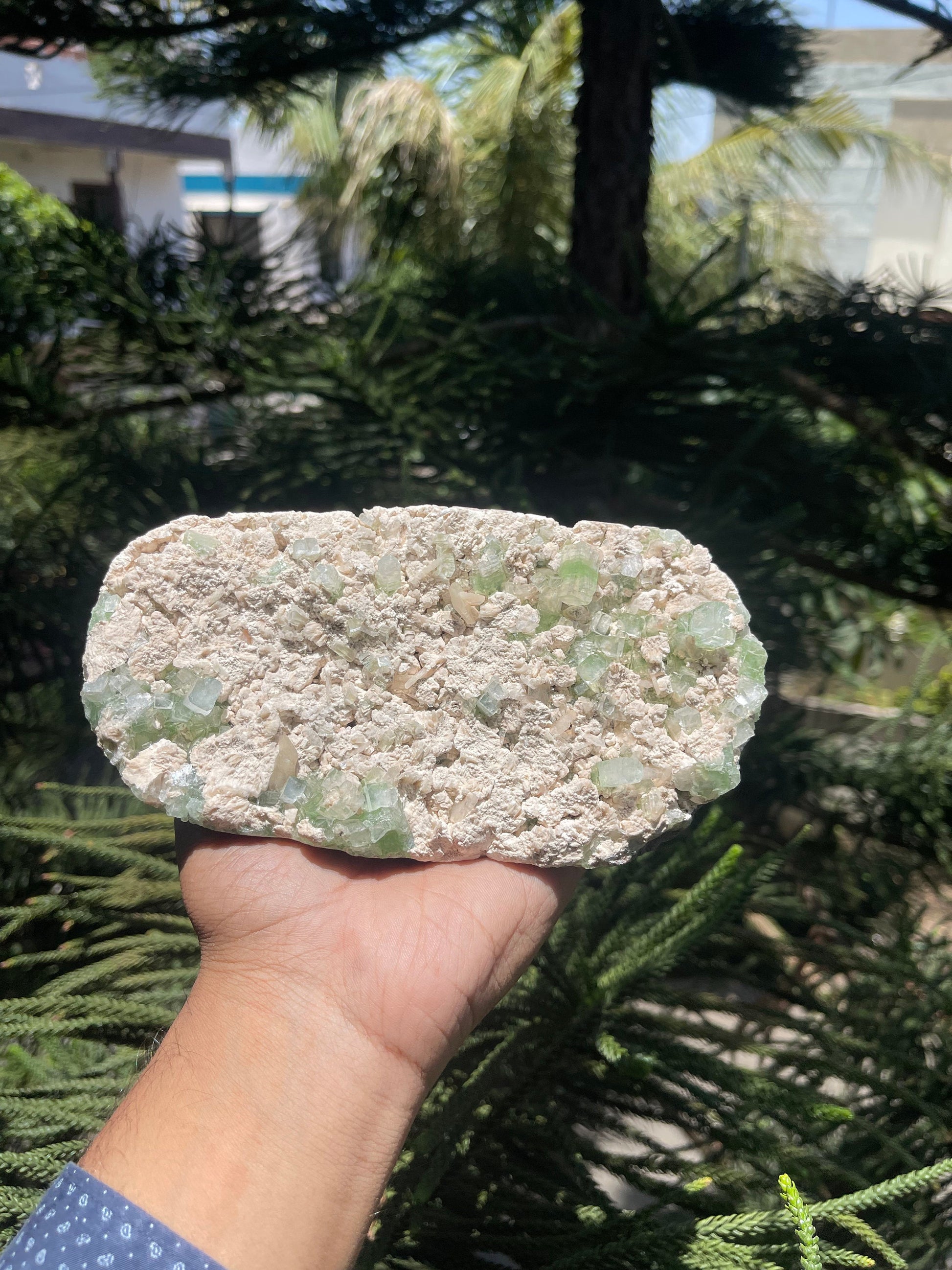 Cubicle green apophyllite crystals with stilbite on matrix